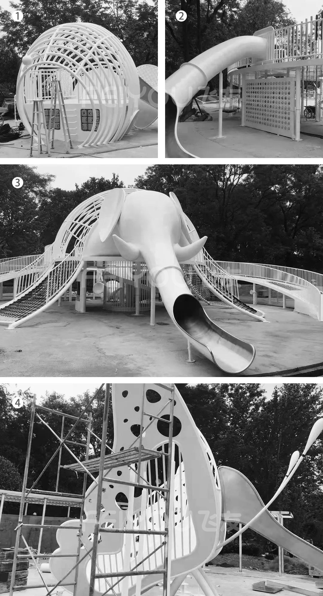 △ ①小象滑梯安裝 ②滑梯安裝 ③大象滑梯安裝 ④蝴蝶滑梯安裝