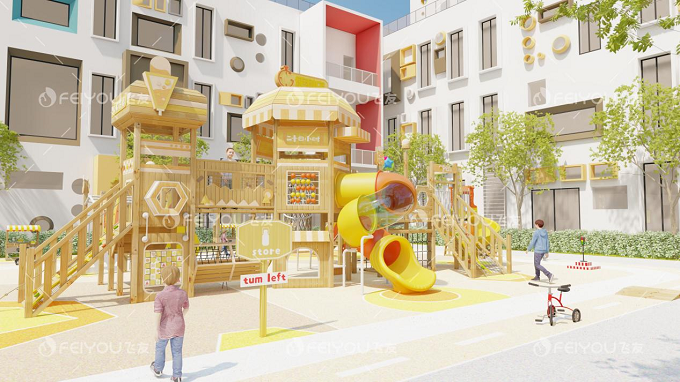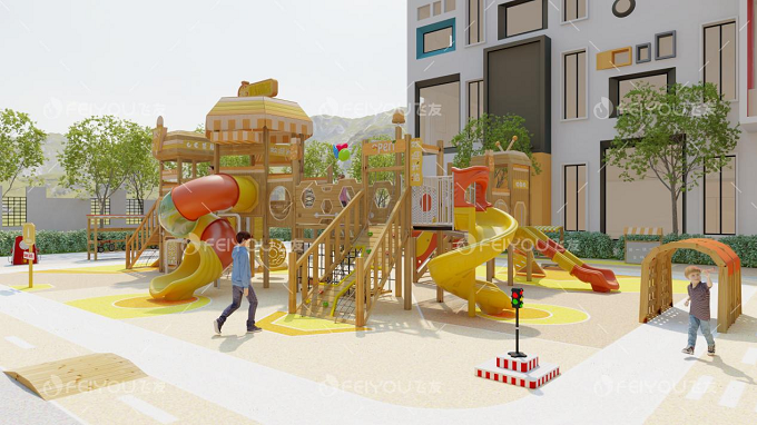 由于木制滑梯的主體構筑材料為木材,整體風格給人感覺更加精致,更具有異國風情的格調,獨特的造型更是吸引了很多的孩子。在許多高端的幼兒園和小區都能看到木制滑梯的身影,可以說木制滑梯除了滿足孩子們的游樂嬉戲與學習鍛煉膽識之外,更加添上了一層審美的色彩。這也可以從側面反映出隨著經濟水平的不斷提高,人們對于孩子的重視程度越來越大,游戲設備僅滿足使用需要已經不足以滿足市場的需求了,各大廠商還必須在審美上下一番功夫。而且現在市面上很多木制滑梯生產商推出了不同造型的木制滑梯定制服務,針對幼兒園、小區、公園等不同環境可以量身定制出不同造型的木制滑梯,使之完美的融入周邊的環境中,甚至成為別具特色的標志。